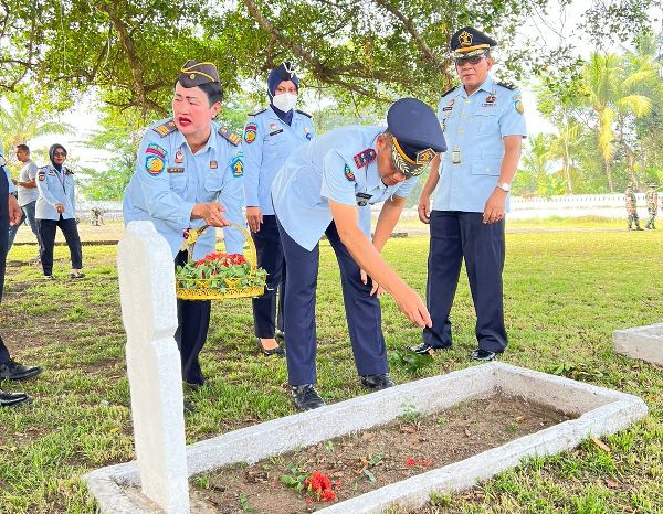 Pelaksana Tugas (PLT) Kepala Lembaga Pemasyarakatan (Kalapas) Kelas II Takalar, Ashari, memimpin upacara tabur bunga, di Taman Makam Pahlawan (TMP) Polongbangkeng, Kelurahan Kallabbirang, Kecamatan Pattallassang, Jumat, 12 Agustus 2022.