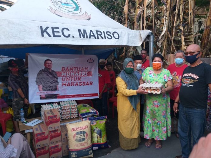 Bakal calon Wali Kota Makassar, Munafri Arifuddin alias Appi kembali memberikan bantuan bagi warga Kampung Hollywood, Kecamatan Mariso, yang menjadi korban kebakaran, Rabu (22/7) lalu.