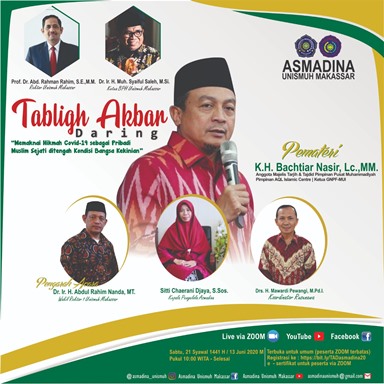 Asrama Mahasiswa KH Djamaluddin Amien (Asmadina) Unismuh Makassar akan menggelar Tabligh Akbar Daring pada Sabtu 13 Juni 2020.