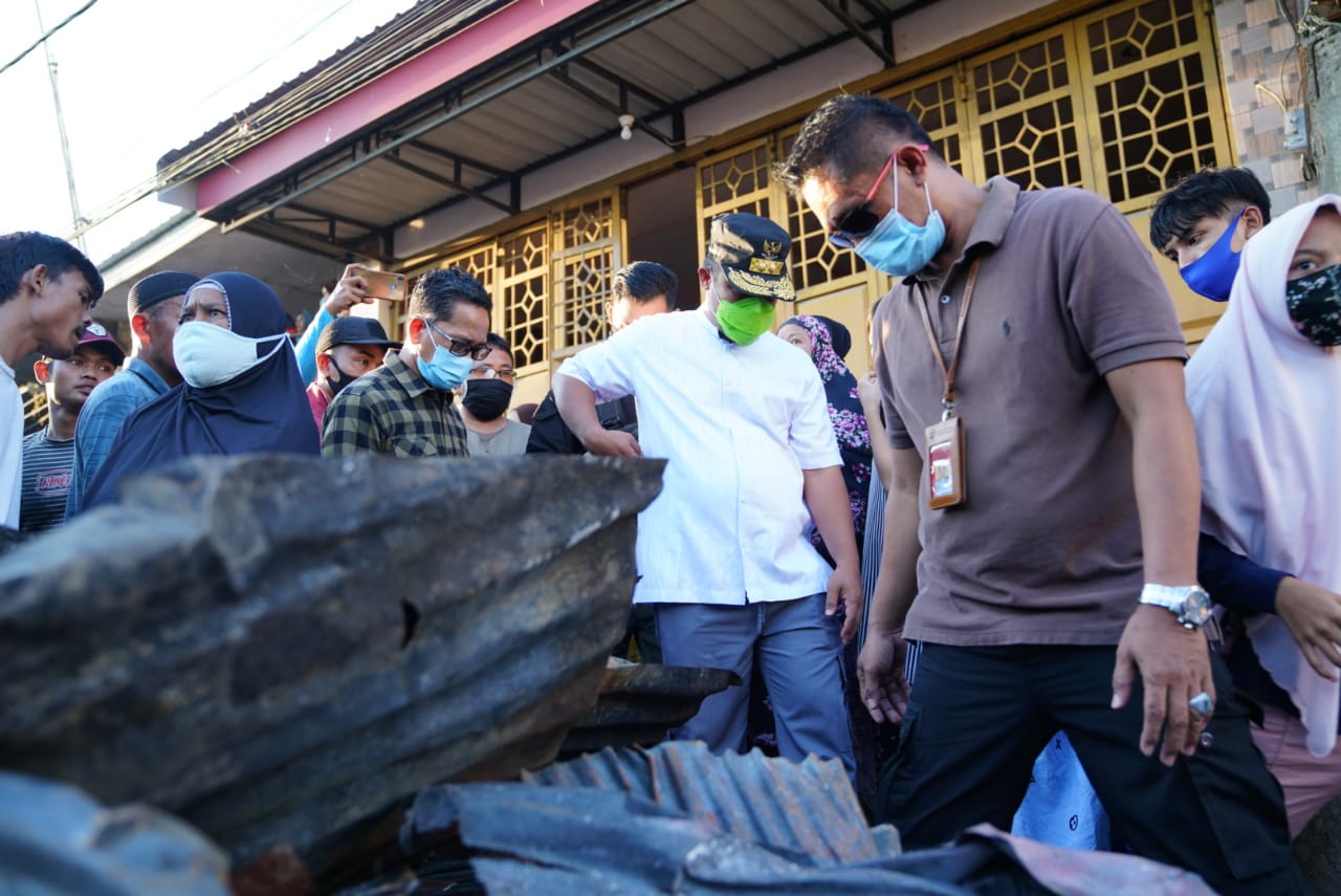 Wakil Gubernur Sulawesi Selatan (Sulsel), Andi Sudirman Sulaiman, mengunjungi lokasi kebakaran yang melanda pemukiman padat penduduk di belakang Pasar Pannampu Jalan Indah 4, RT.05/ RW.06, Kelurahan Pannampu, Kecamatan Tallo, Makassar, Minggu (23/8/2020) sore.