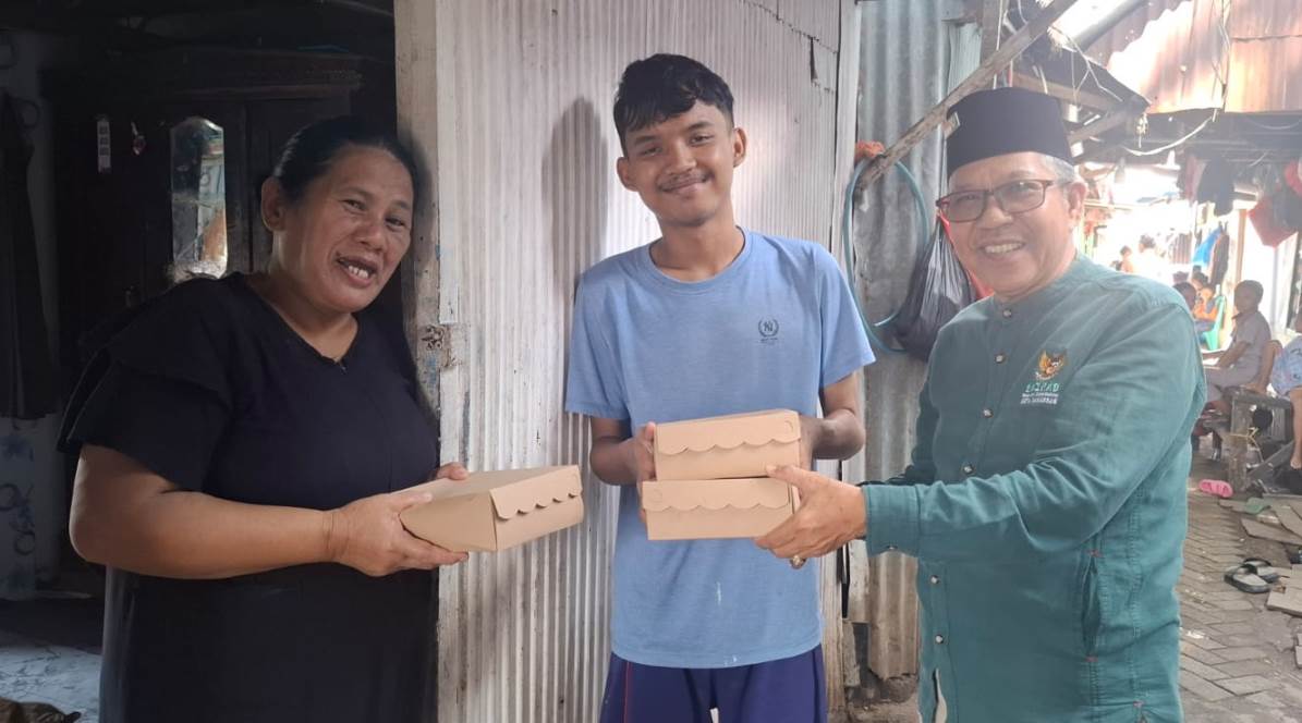 ‘Pada Jumat hari ini, kami berbagi kepada kaum dhuafa di perkampungan kumuh di Jalan Danau Tanjung Bunga ini. Kali ini kami menyalurkan sebanyak 150 dus menu bergizi,” tutur H.Jurlan Em Saho’as.