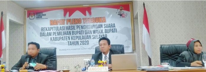 Pleno KPU Kepulauan Selayar, rekapitulasi penghitungan surat suara Pemilihan Bupati dan Wakil Bupati Tahun 2020. Pleno berlangsung di Ruang Pola Kantor Bupati, Jalan Jend. A. Yani, Benteng, Rabu (16/12/2020).
