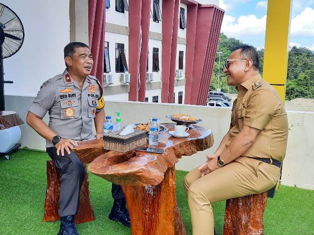 Polda Sulbar – Menerima kunjungan silaturahmi Bupati Mamuju Habsi Wahid, kemarin siang, Kamis (26/3/20) Kapolda Sulbar Brigjen Pol Dr. Eko Budi Sampurno membahas terkait pencegahan penyebaran covid-19.