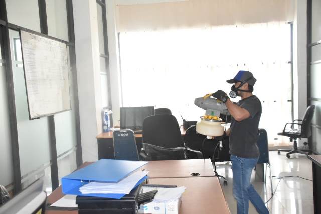 “Manusia harus berikhtiar dan salah satunya dengan melakukan penyemprotan disinfektan ini. Hari ini bukan saja Dinas Kominfo yang melakukan penyemprotan, tetapi juga ada beberapa OPD lainnya,”ungkapnya.
