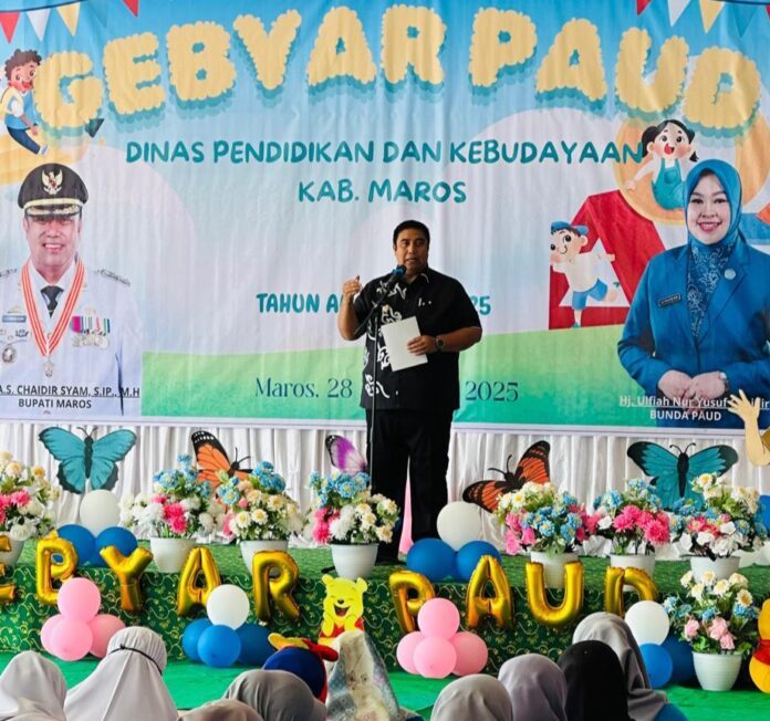 Ungkapan terima kasih dari orang nomor satu di Maros itu di sela sela membuka Gebyar PAUD Kabupaten Maros Tahun 2025 yang digelar Dinas Pendidikan dan Kebudayaan Maros, di Tribun Lapangan Pallantikan, Kantor Bupati Maros, Jumat 28 November 2025.