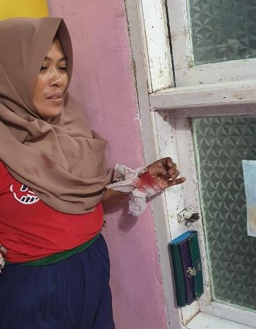 Kabid Humas AKBP Syamsu Ridwan menyebutkan penganiayaan ini dilakukan oleh Udin (42) ini diketahui korbannya adalah keluarganya sendiri yaitu Asriani (istri pelaku) mengalami luka robek dipergelangan tangan sebelah kanan sekitar 6 Cm dan luka robek pada telapak tangan sebelah kiri sekitar 4 Cm.