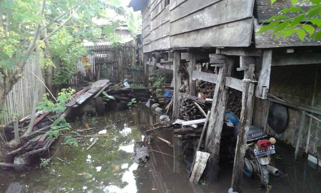 Hingga hari Jum’at, (29/05) petang, ketinggian air yang merendam pemukiman warga di kota Benteng hampir setinggi lutut orang dewasa.