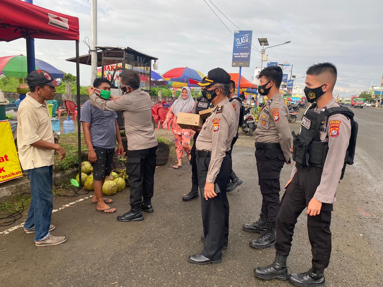 Direktur Binmas Kombes Pol Andareas, S.E.,M.M. melalui Kabid Humas Polda Sulbar AKBP Syamsu Ridwan SIK menuturkan Hal ini dilakukan untuk terus mengingatkan kepada masyarakat terkait pentingnya menggunakan masker jika beraktivitas di luar rumah guna mencegah penularan virus corona.