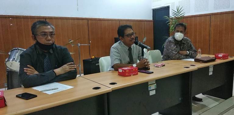 Tiga dosen pengusul Guru Besar, Rabu (24/6/2020), di Auditorium Ridwan Saleh Mattayang Kantor LLDIKTI IX mempresentasikan jurnal syarat khusus di hadapan Penyelaras Dewan Etik LLDIKTI Wilayah IX Sulawesi dan Gorontalo.