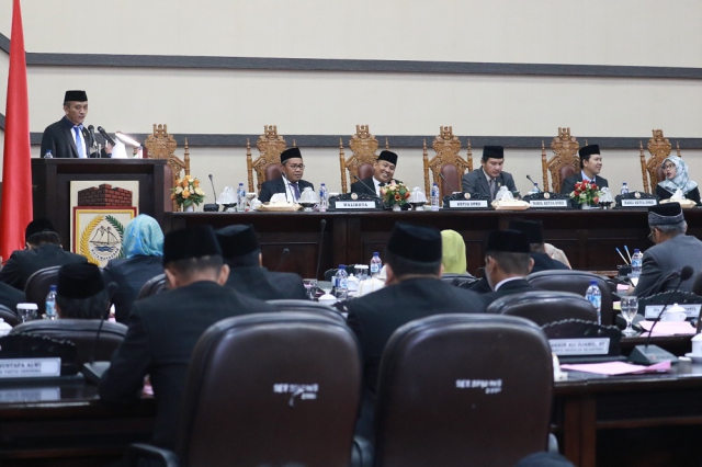 Ketua DPRD Kota Makassar, Farouk M Betta memimpin Paripurna yang berlangsung di Ruang Sidang Paripurna DPRD Makassar ini.Turut mendampingi Farouk M Beta masing-masing Wakil Ketua, Adi Rasyid Ali, Erick Horas dan Indira Mulyasari Ilham.