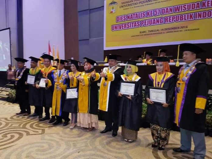 “Yang paling menggembirakan adalah IPK rata-rata lulusan ini diatas 3,00; dengan lama masa study rata-rata 4 tahun. Pada wisuda kali ini Univrsitas Pejuang RI Makassar mencetak lulusan terbaik,” urai mantan ketua KNPI Sulsel ini.
