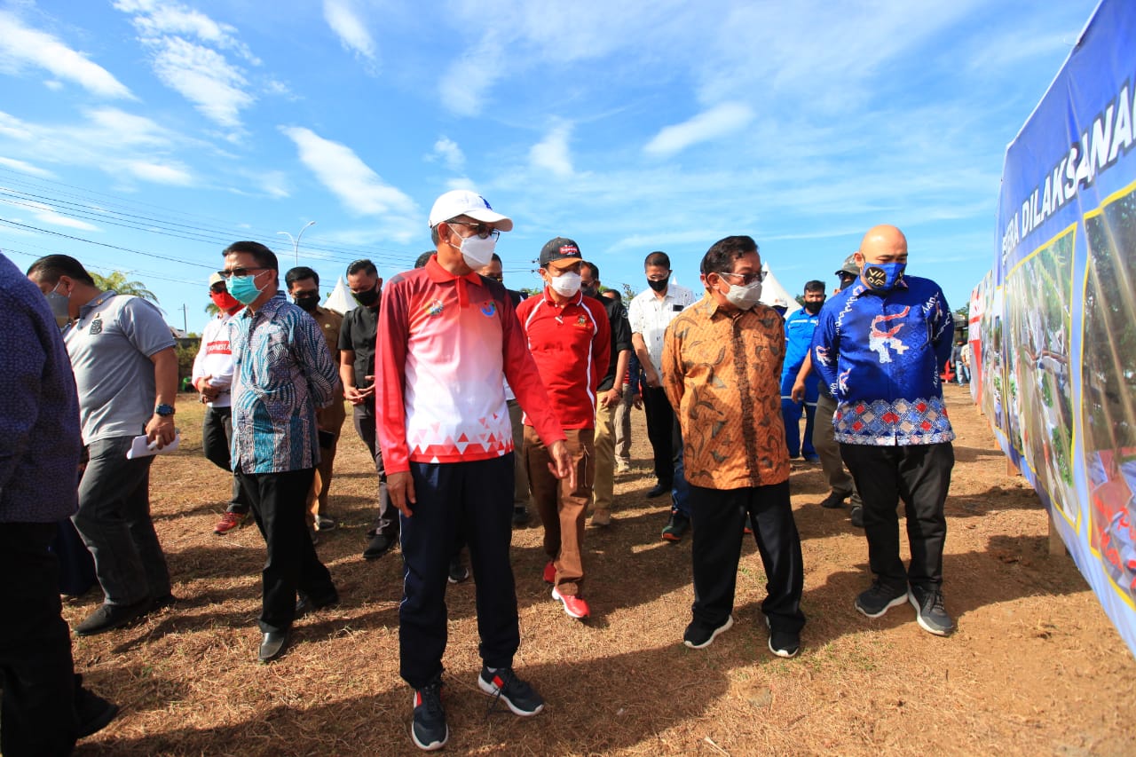 Founder Bosowa Grup, Aksa Mahmud, mewakafkan lahan untuk mega proyek pembangunan di Tanjung Bunga. Prosesi wakaf ditandai dengan pematokan lahan di depan Anjungan Danau Dayung Tanjung Bunga, Makassar, Minggu (13/9/2020). Hadir dalam kegiatan ini Gubernur Sulawesi Selatan, Prof Nurdin Abdullah , Pj Walikota Makassar, Prof Rudy Djamaluddin dan Ketua DPRD Kota Makassar, Rudyanto Lallo.