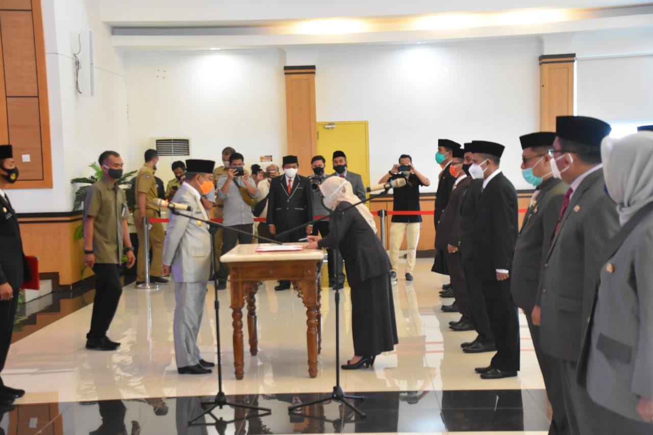 Gubernur Sulbar, Ali Baal Masdar melantik 15 pejabat pimpinan tinggi pratama lingkup Pemprov Sulbar di Aula lantai 4 Kantor Gubernur Sulbar, Senin, 27 Juli 2020