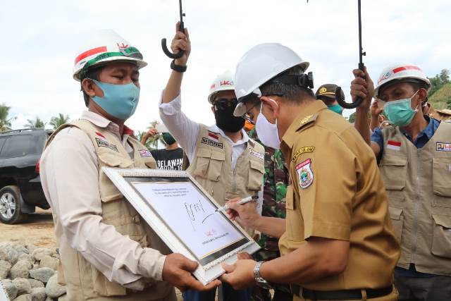 Gubernur Sulbar , Ali Baal Masdar meresmikan Bendungan Kalukku dari Kementrian PUPR yang merupakan program padat karya non rutin 2020, di Desa Pokkang, Kecamatan Kalukku, Selasa 02 Juni 2020.