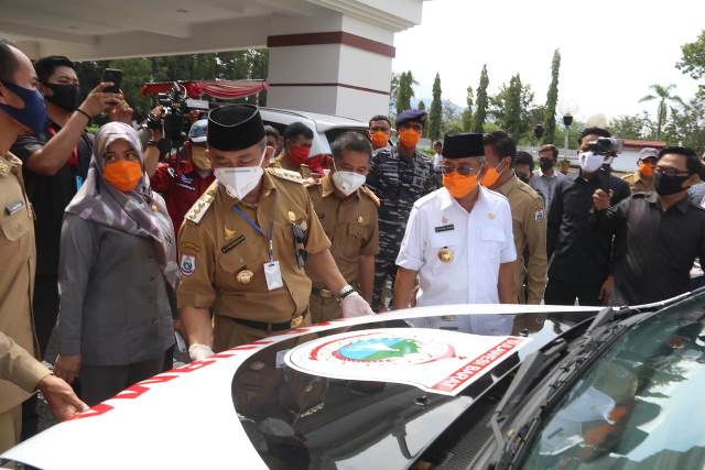 Di tempat yang sama pula, selain memberikan bantuan sembako, juga menyerahkan satu unit mobil ambulance Covid-19.