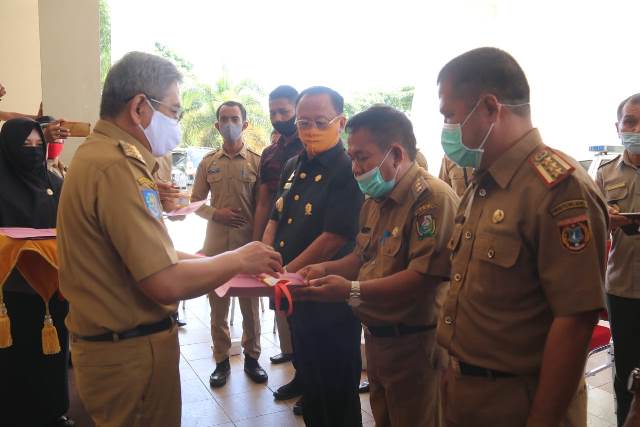Gubernur Sulbar, Ali Baal Masdar didampingi Sekprov Sulbar, Muhammad IdrisĀ menyerahkan secara simbolisĀ bantuan mobil ambulance, dan peminjaman mobil tangki, serta tandon air untuk kabupaten dalam penanganan Covid-19. Bantuan diserahkan di Kantor Gubernur Sulbar, Selasa, 2 Juni 2020.
