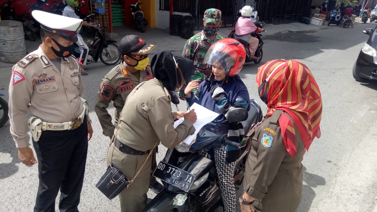 Dalam kegiatan Oprasi yustisi, petugas melaksanakan himbauan dan teguran baik secara lisan maupun tertulis kepada warga yang tidak memakai masker untuk mematuhi protokol kesehatan.