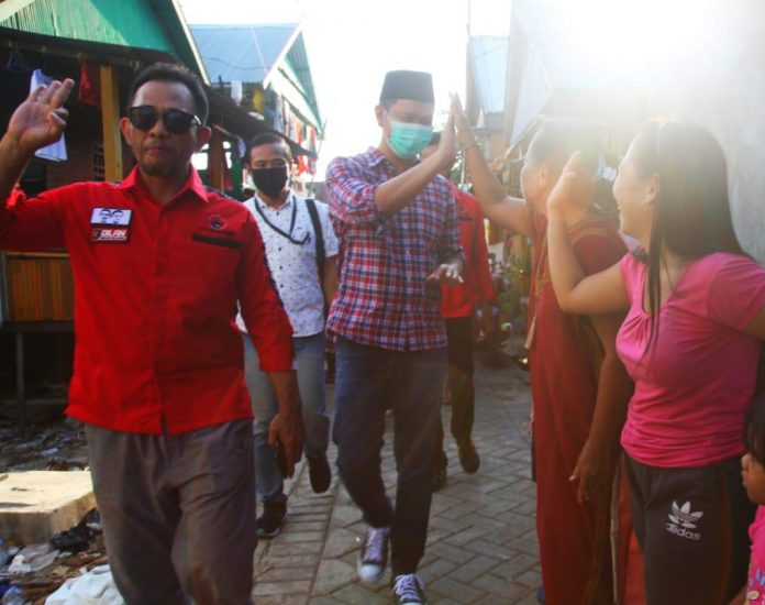 Calon Wakil Walikota Makassar, dokter Fadli Ananda kampanye di Kelurahan Buloa, Kecamatan Tallo, Kota Makassar, Senin (16/11/2020). Dalam kampanye tersebut, paslon nomor urut 3 itu menarik perhatian warga, khususnya kalangan ibu-ibu.
