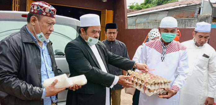 Ketua Umum Ittihad Persaudaraan Imam Masjid (IPIM) Sulsel KH Masykur Yusuf, S.Ag.M.Ag. menyerahkan bantuan sembako dan uang tunai kepada tiga imam masjid yang terkena musibah banjir di Kecamatan Manggala, Sabtu (26/12/2020).