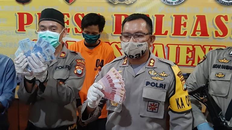 Pengungkapan uang palsu ini dirilis langsung oleh Polres Majene dan dipimpin langsung oleh Kapolres AKBP Banuaji, Jumat (8/5/20). (humas polda sulbar-sabar)