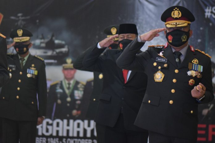 Tentara Nasional Indonesia (TNI) memperingati hari jadi ke-75, Senin (05/09/20). Perayaan Hari jadi TNI kali ini agak berbeda, jika tahun-tahun sebelumnya dilaksanakan secara meriah dengan dihadiri ribuan tamu undangan, kali ini hanya secara virtual.