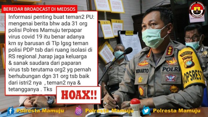 Kapolresta Mamuju Kombespol MINARTO, membatah isu yang beredar di medsos bahwa sebanyak 31 orang personel Polresta Mamuju telah terpapar Covid-19 adalah Hoax