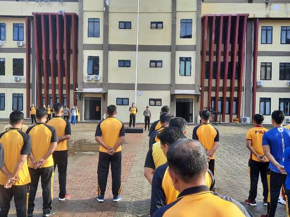 Mengingatkan tentang jati diri sebagai bhayangkara Polri, Kepala Biro Logistik Kombes Pol Mukhamad Safei, SIK, MH saat memimpin pelaksanaan apel pagi menyebutkan kedisiplinan dan loyalitas harus jadi dasar utama kita dalam bekerja, Jumat (20/3/20).