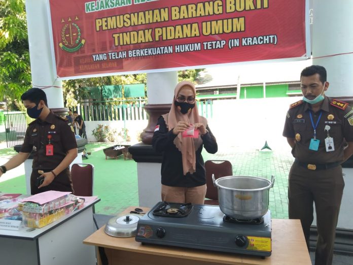 Kejaksaan Negeri (Kejari) Kepulauan Selayar bersama Sat Narkoba Polres Kepulauan Selayar memusnahkan barang bukti narkoba jenis Sabu dan Kosmetik yang mengandung merkuri halaman kantor Kejari Kepulauan Selayar, Jalan WR. Supratman 4 Benteng, Selayar, Kamis (6/10/2020).