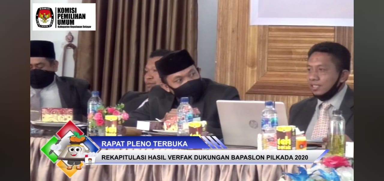 Setelah rapat pleno terbuka rekapitulasi hasil verifikasi faktual (verfak) dukungan bakal calon perseorangan (bapaslon) perseorangan dihelat oleh KPU Kepulauan Selayar, Sulawesi-Selatan, pada hari, Senin, (20/07) kemarin.