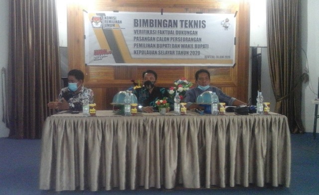 Pelaksanaan agenda bimbingan tekhnis (bimtek) verifikasi faktual dukungan bakal calon perseorangan yang dilaksanakan pada hari Sabtu, (20/06), bertempat, di gedung PKK Kabupaten Kepulauan Selayar, di ruas Jln. Muh. Krg Bonto, dihadiri empat, dari lima komisioner, Komisi Pemilihan Umum (KPU) Kabupaten Kepulauan Selayar, bersama segenap staf.