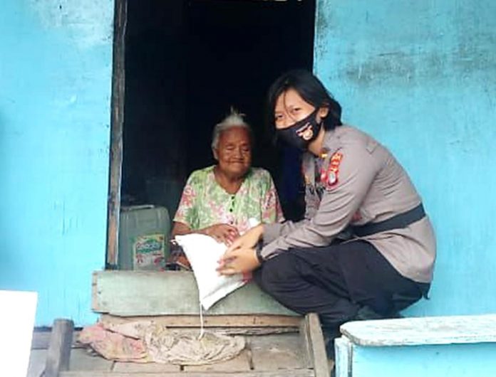 Peduli warga kurang mampu yang terdampak Covid-19, Satuan Binmas Polres Majene mendistribusikan paket beras kepada keluarga kurang mampu dilingkungan Rangas kecamatan Banggae Kabupaten Majene, Selasa (4/8/2020).