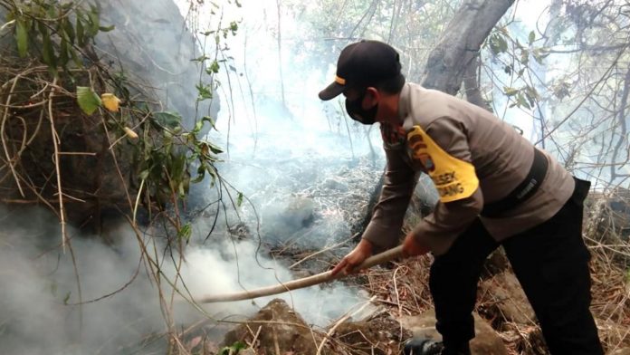 Lanjut dikatakan bahwa Personil Polsek Pamboang Polres yang mengetahui peristiwa tersebut langsung mendatangi lokasi kejadian bersama warga masyarakat untuk memadamkan api yang telah mulai merambat luas.