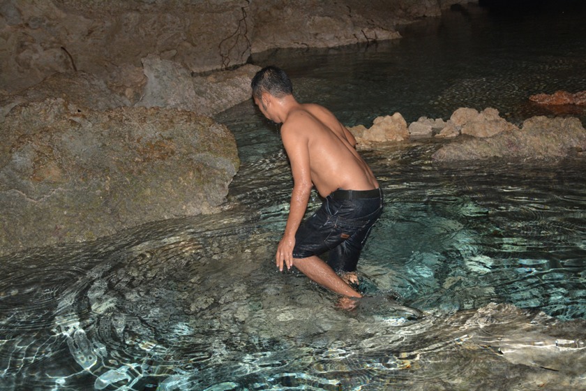 Disekitaran goa, mulai terlihat gelap. Namun, istri saya, ama kaplale dan dua anak saya (syasa diarani yahma pattisausiwa dan Muhammad Fauzan Fahriyah Pattisahusiwa) bersama ponaan aya, ita, ama assagaf, dan lainnya kami masuk goa. Bebatuan disini lincin dan berada pada kemiringan.