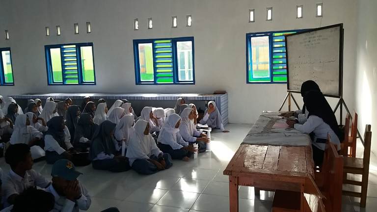 Untung saja 8 Kepala Desa (Kades) diwilayah ini memiliki niat suci untuk meminjamkan sementara masing-masing 10 pasang meja dan kursi untuk satu kepala desa sambil menunggu bantuan mobiler itu turun dari Pemerintah Propinsi Sulawesi Selatan. Jika tidak maka sekitar ratusan siswa yang terancam duduk melantai akibat kekurangan sarana dan prasarana di sekolah ini.” tambahnya.