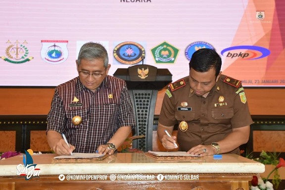 Kerjasama tersebut, diperkuat dalam Memorandum Of Understanding (MoU) yang ditandatangani oleh Gubernur Sulbar Ali Baal Masdar, Kajati Sulbar Darmawel Aswar, Ketua DPRD Sulbar Hj. St. Suraidah Suhardi, Danlanal Mamuju, La Ode Jimmy H.R, Kakanwil Kemenag Sulbar, Mufli B. Fatta, Kepala BNN Sulbar Brigjen Pol. Kenedy dan Kepala BPKP Sulbar Hasoloan Manalu, di ruang Auditorium lantai 4 Kantor Gubernur Sulbar, Kamis 23 Januari 2020.