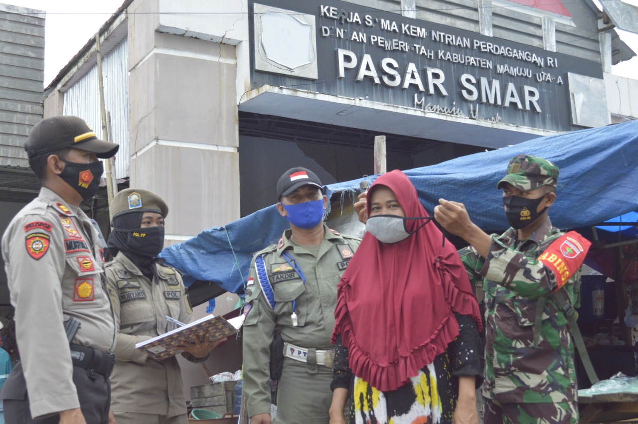 Sebanyak 25 orang masyarakat kabupaten pasangkayu terjaring Petugas gabungan dari Polres Pasangkayu, Kodim dan Sat Pol PP Kabupaten Pasangkayu dalam Operasi Yustisi di Pasar Smart Kabupaten Pasangkayu. Selasa Pagi (15/9/2020).