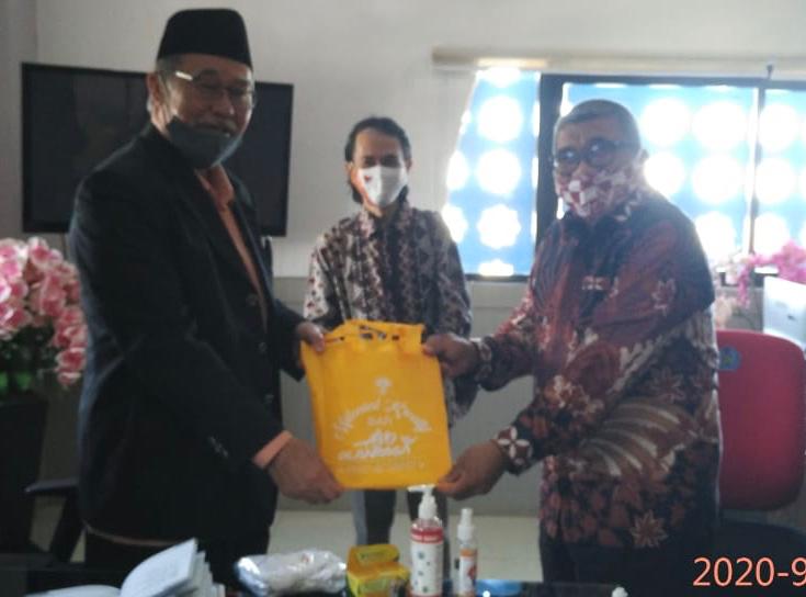 Deputi bidang Pemberdayaan Kementerian Pemuda dan Olahraga (Kemenpora RI) Prof. Dr. H. Faisal Abdullah, SH, M.Si, DFM melalui Akademisi Arqam Azikin menyerahkan Paket Protokol Kesehatan kepada Ketua BPH Unismuh Makassar Dr. HM Syaiful Saleh, M.Si, kemudian memberikan kepada Rektor Unismuh Prof. Dr. H. Ambo Asse, M.Ag.