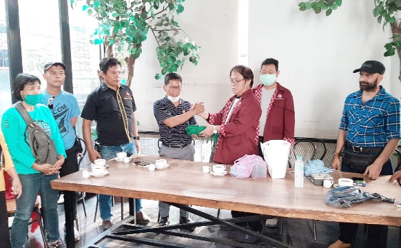 Penyerahan bantuan untuk para jurnalis dan pekerja tempat hiburan serta masyarakat umum itu, berlangsung di Publiq Dine & Wine, dihadiri para pengurus masing-masing organisasi, pada Rabu (01/04/2020) sore.