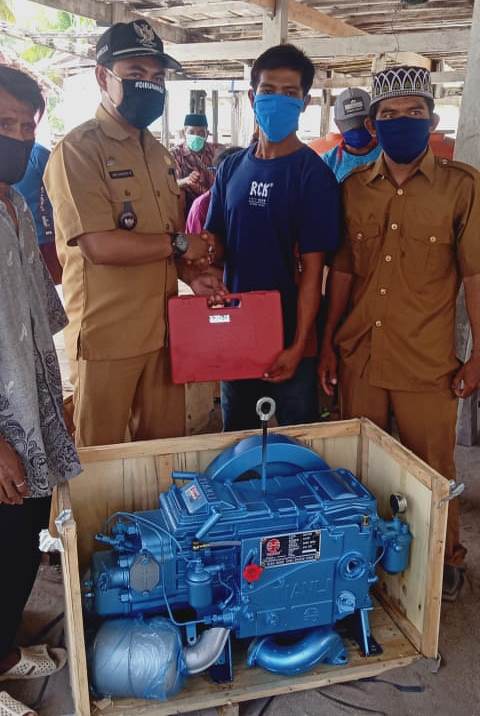 Bantuan tersebut berupa Mesin Diesel Tianli 33 PK diserahkan kepada 10 orang nelayan. Selain itu, bantuan perbaikan atap rumah tidak layak, dan diberikan bantuan berupa seng asbes masing-masing 60 lembar per KK denga total yang mendapat bantuan sebanyak 25 KK.