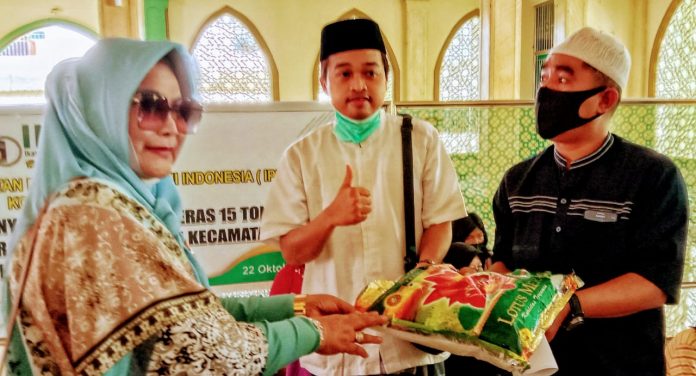 Ketua IPHI Kota Makassar Dr. Ir. Hj. Apiaty Amin Syam,M.Si. didampingi Sekretaris KH. Masykur Yusuf,S.Ag.,M.Ag. melakukan penyerahan secara simbolis diwakili imam masjid Kelurahan Kapasa dan Katimbang yang dipusatkan di Masjid Arrahmah BTN Hamzi, Kamis (22/10/2020).