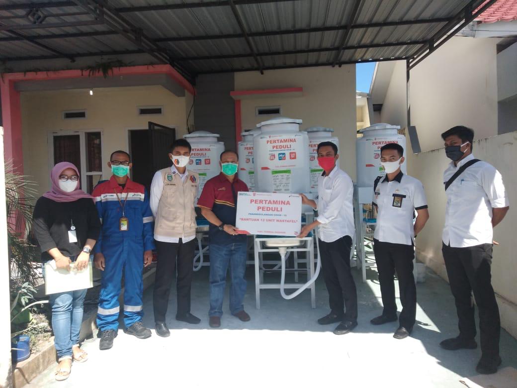 Sebanyak 12 unit wastafel portable diserahkan langsung oleh Fuel Terminal Manager Pare-Pare, Muhsin, kepada Camat Soreang, Dede Harirustaman, S.STP., di Kantor Camat Soreang.