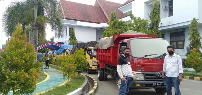 Logistik Pilkada yang didistribusikan hari ini, baik yang akan ke Kecamatan Kepulauan via Pelabuhan Pattumbukang dan sebagian di Kecamatan Daratan, menggunakan 8 unit mobil truk. (Ucok Haidir)