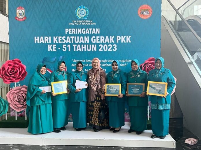 Tim Penggerak PKK Kota Makassar, memperingati Hari Kesatuan Gerak (HKG) PKK ke-51 tahun 2023. Peringatan hari jadi tersebut berlangsung di Upper Hills Convention Hall, Senin, 16 Oktober 2023.