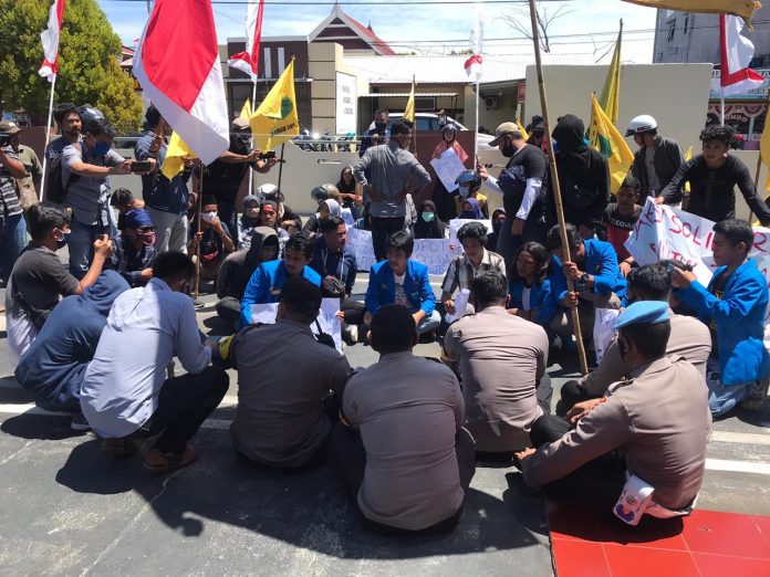 Duduk melantai dibawah terik matahari, Kapolresta Mamuju mendengarkan keluh kesah dan aspirasi yang disampaikan oleh para Mahasiswa tentang pembubaran aksi demonstrasi yang dilakukan Pihak Polresta Mamuju, Senin (17/08/20) kemarin.