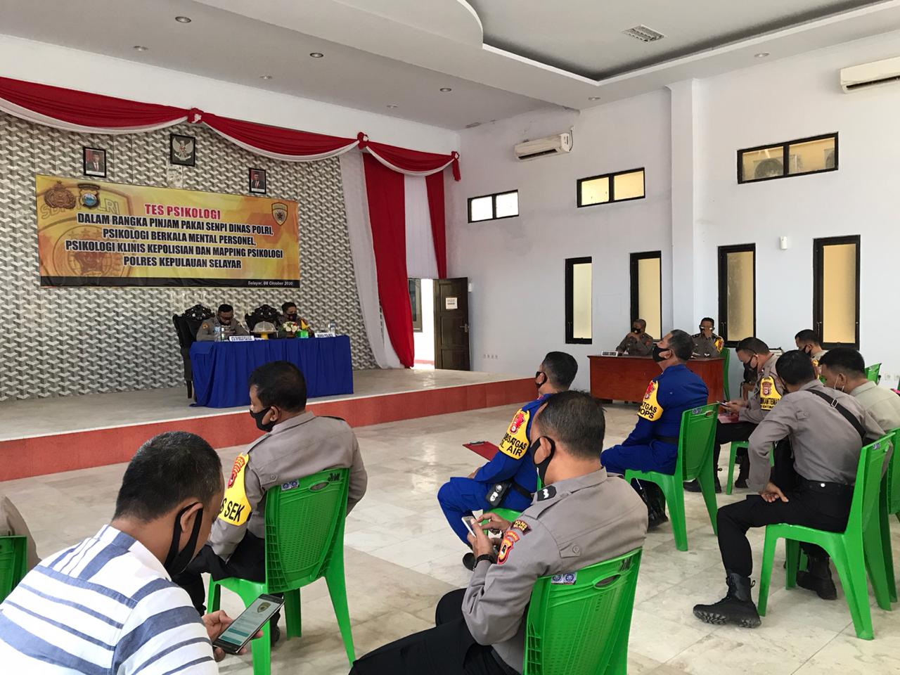 Bertempat di Aula Endra Darmalaksana Mapolres Kepulauan Selayar, JalanWolter Monginsidi No 2 Benteng, berlangsung tes psikologi berkala mental personil Polri dalam rangka pinjam pakai senjata api dinan Polri, Kamis 8/10/2020.