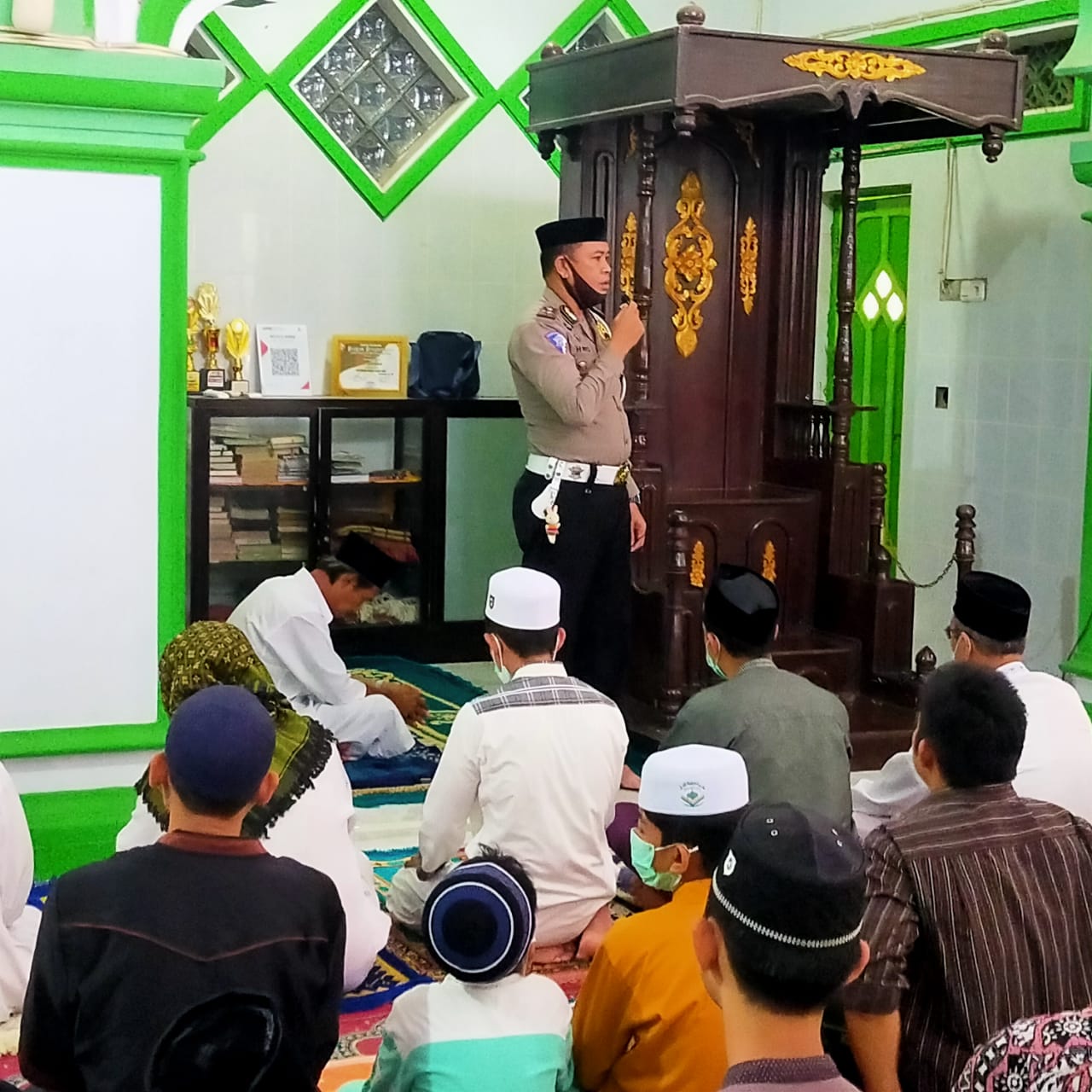 Sat Lalu lintas Polresta Mamuju melaksanakan himbauan dan Sosialisasi Adaptasi Kebiasaan Baru (AKB) di tengah masa pandemi covid-19 kepada masyarakat di Mesjid Al Ikhwan Galung Kelurahan Binanga Kecamatan Mamuju. (Rabu 02/09/2020).