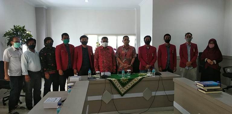Rektor Unismuh Makassar, Prof Dr H Abdul Rahman Rahim SE MM, menerima silaturrahim pengurus DPD IMM Provinsi Sulsel, dipimpin ketua baru terpilih, Abdul Gapur S.Sos, Rabu 26 Juni 2020 di Lantai 16 Gedung Iqra Unismuh Makassar.